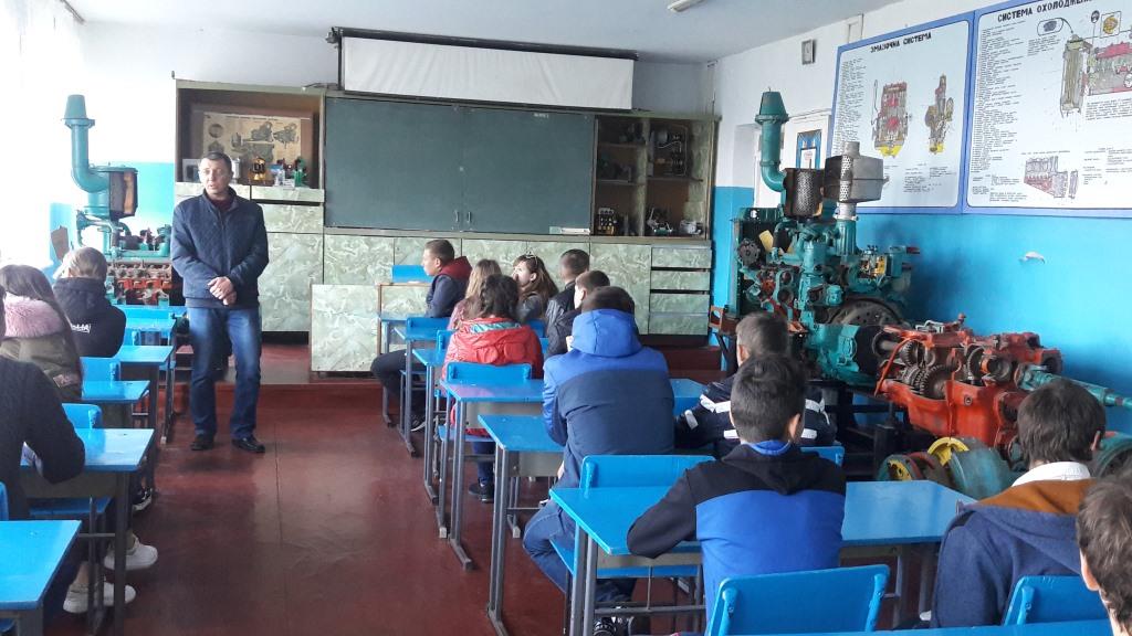 Провідний фахівець з питань зайнятості Арбузинської районної філії Миколаївського ОЦЗ Оксана Шарата розповіла учням про актуальність робітничих професій, довела, що для роботи за сучасними професіями необхідні гарні ґрунтовні знання з багатьох предметів. Також надала професіографічну характеристику професії пожежний-рятівник, розповіла про історію виникнення професії, що повинен знати і вміти пожежний-рятівник, як і в яких умовах відбувається процес праці, які вимоги ставить дана професія до психофізіологічних особливостей людини. Звернула увагу, що висококваліфікований пожежний-рятівник навіть в разі втрати роботи може швидко знайти споріднену або перекваліфікуватись на іншу професію.