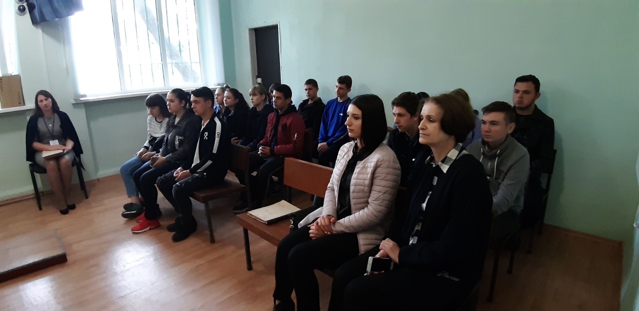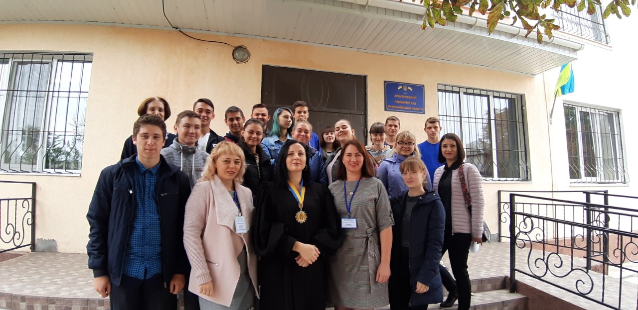 Екскурсія розпочалась у залі судових засідань, з вітальним словом виступила керівник апарату Арбузинського районного суду Миколаївської області Агеєва Олена Станіславівна, яка була рада вітати старшокласників в стінах суду. Вона розповіла присутнім про унікальність професії юриста, адже юрист може працювати як на державній службі, в приватній компанії, так і як самозайнята особа. Якщо юрист обирає для себе державну службу, він може працювати прокурором, суддею, нотаріусом, адвокатом, експертом, працівником слідчих органів тощо. Якщо юрист обирає для себе приватний сектор економіки, він може захищати інтереси клієнтів у судах, працювати штатним юристом в господарських підприємствах тощо. Професія юрист - це, перш за все, величезний рівень відповідальності. У руках фахівця - долі людей, підприємств. Також вона наголосила, що юрист повинен постійно самовдосконалюватися шляхом постійного навчання.