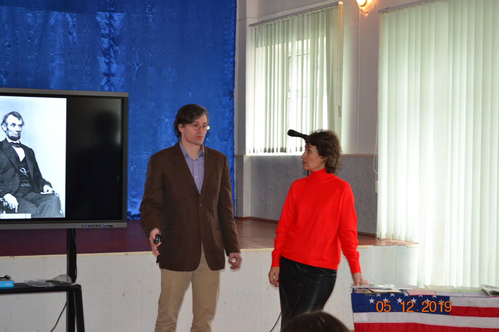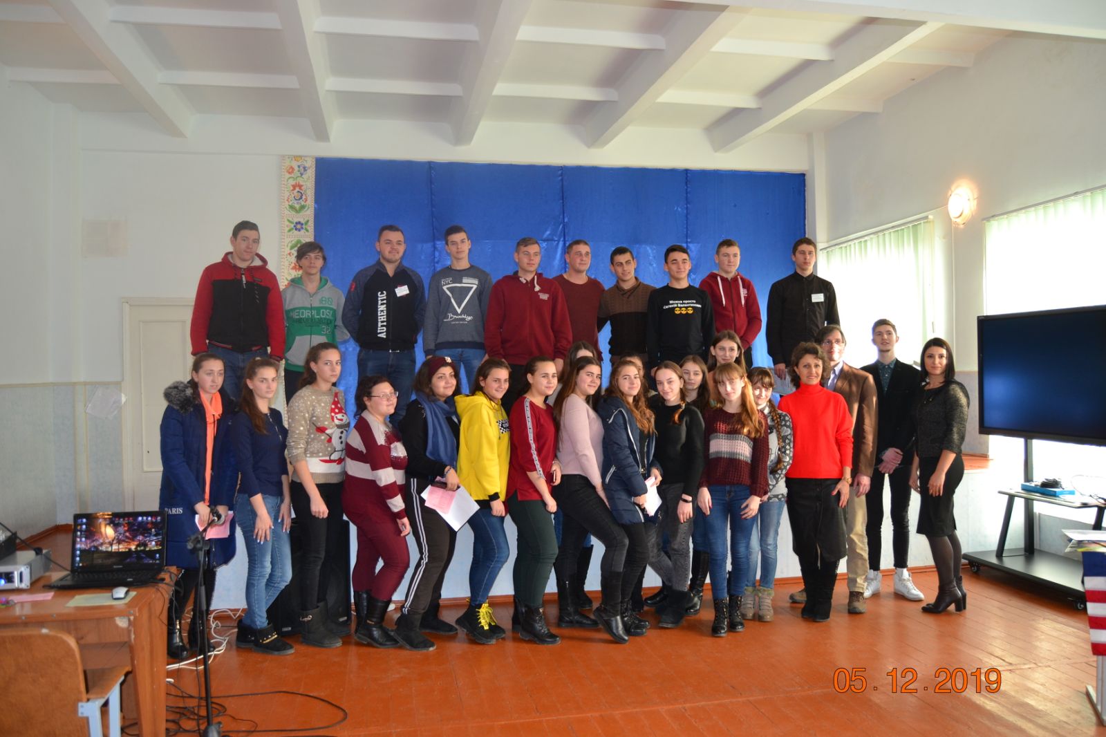 Волонтер Корпусу миру Роберт Тенер, який приїхав з США і на сьогоднішній день працює в МНАУ, викладає англійську мову, провів з випускниками цікавий творчий захід, розповів про життя в Америкі, їхні традиції, Роберт захопив увагу присутніх своєю презентацією про історію США. Школярі із задоволенням спілкувались з носієм англійської мови, Жанна Вікторівна допомагала Робертові в перекладі тексту на українську мову.