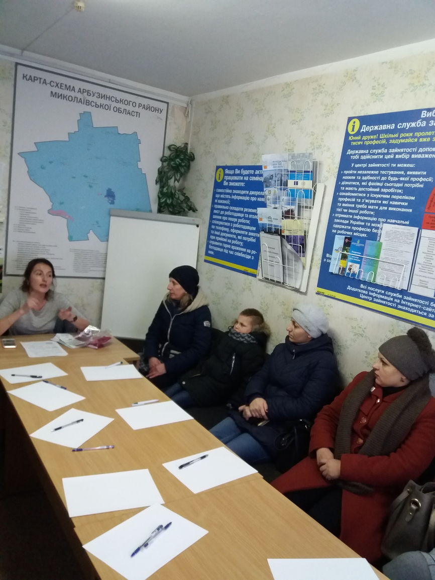 Захід відвідали 11 безробітних, які звернулися за послугами до Арбузинської районноїфілії Миколаївського обласного центру зайнятості.