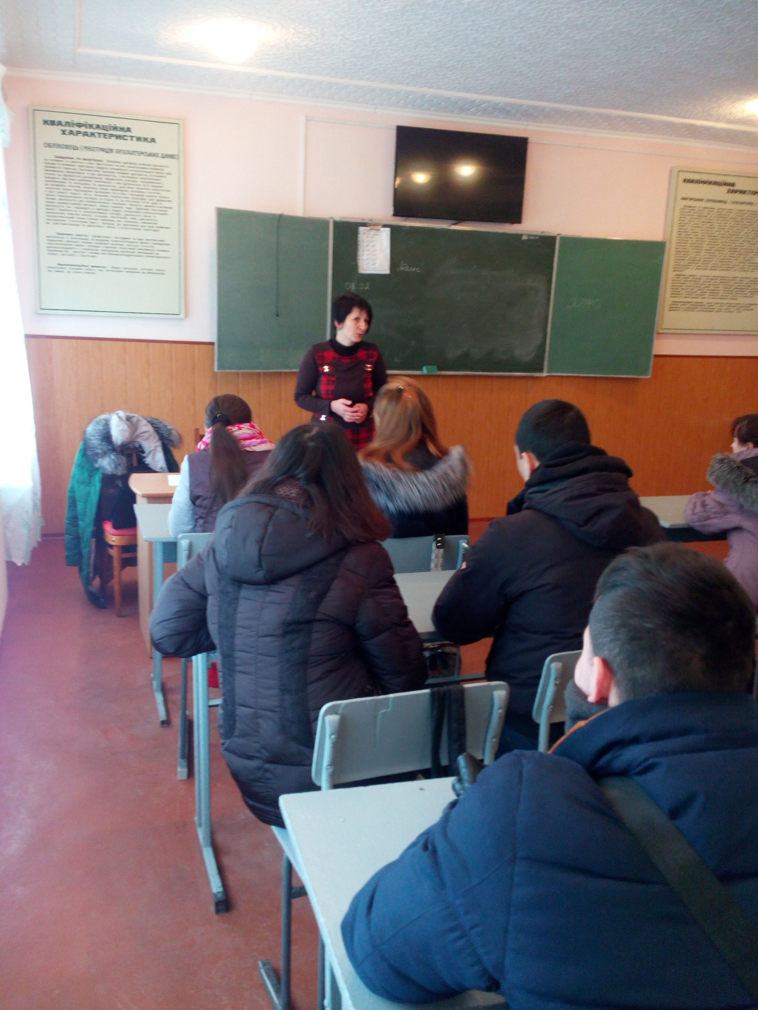 08.02.2018 року начальником відділу із соціальної роботи центра соціальних служб для сім'ї, дітей та молоді серед студентів Арбузинського ПАЛ проведено інформаційно – роз’яснювальну роботу щодо підготовки молоді до сімейного життя. Під час бесіди обговорювалися різні ситуації щодо взаємовідносин між хлопчиками та дівчатками, проводилося тестування та анкетування студентів щодо готовності до вступу в шлюб. Розповсюджено інформаційно - просвітницькі матеріали у кількості 30шт.