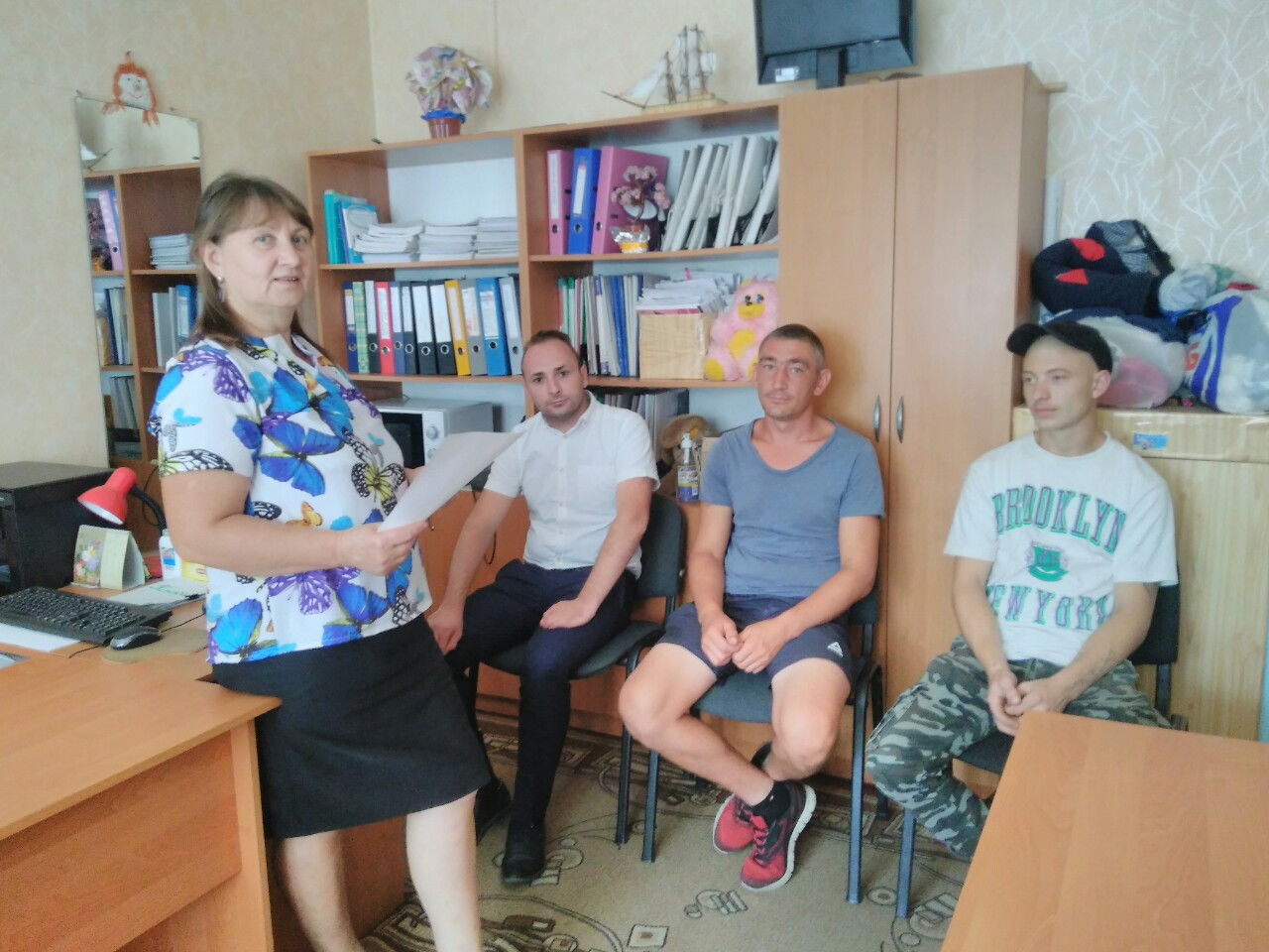 15.08.2019 року на базі Арбузинського ЦСССДМ проведено груповий захід з клієнтами пробації на тему "Види соціальних послуг, що надаються центрами осціальних служб особам, звільненим від відбування покарань, не пов"язаних з позбавленням волі". Охоплено 5 осіб, роздано інформаційні буклети та візитівки центру.