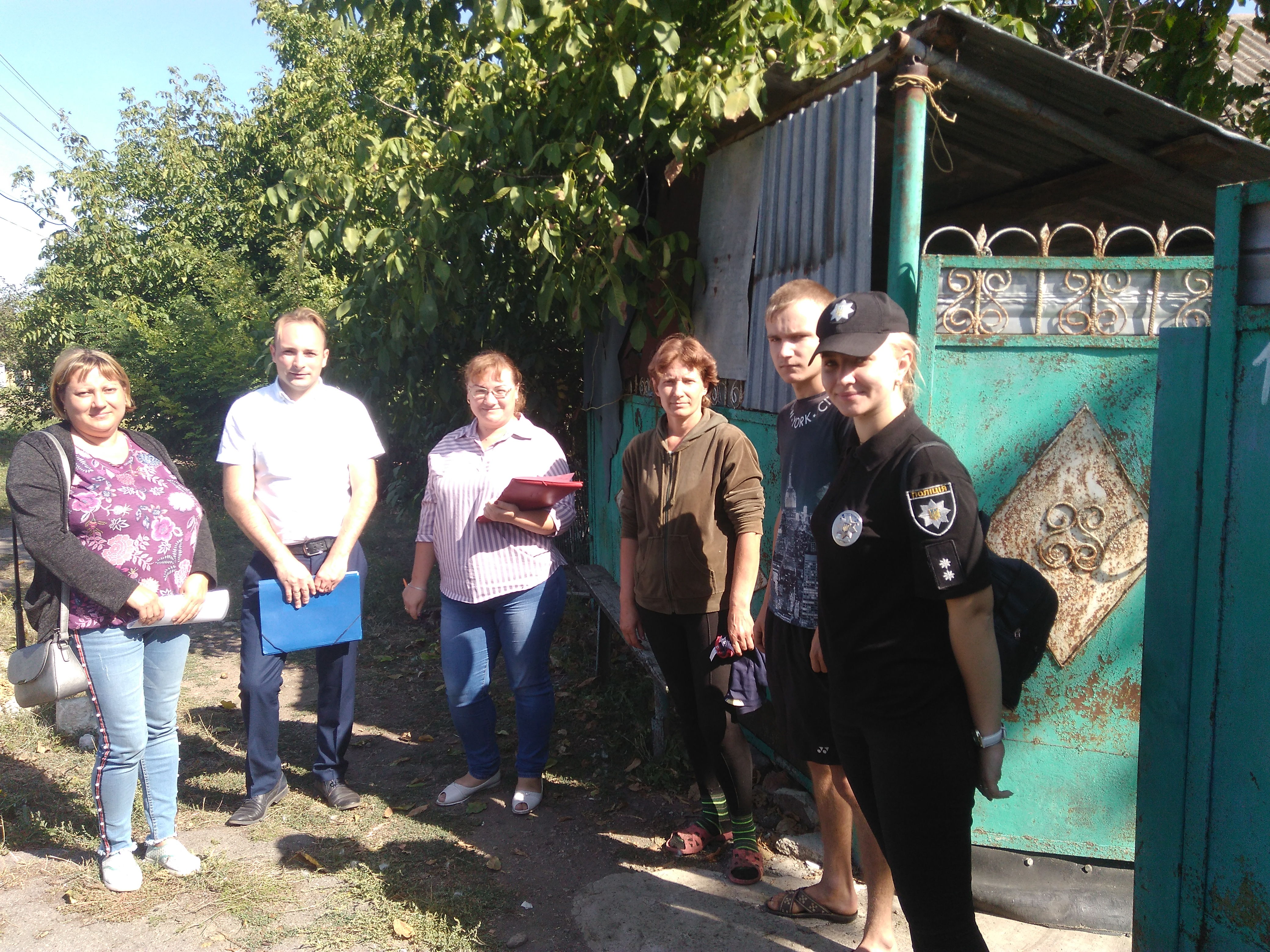 10.09.2019 року фахівцем центру Кравченко Ю.В., було прийнято участь у спільному відвідуванні сім"ї неповнолітнього, який проживає на території смт,Арбузинка. В ході візиту та під час особистого спілкування спеціалістами різних служб надано ряд соціальних послуг як мамі так і неповнолітній особі, оглянуто умови проживання неповнолітнього та надано рекомендації щодо навчання в ліцеї, його систематичного та регулярного відвідування.