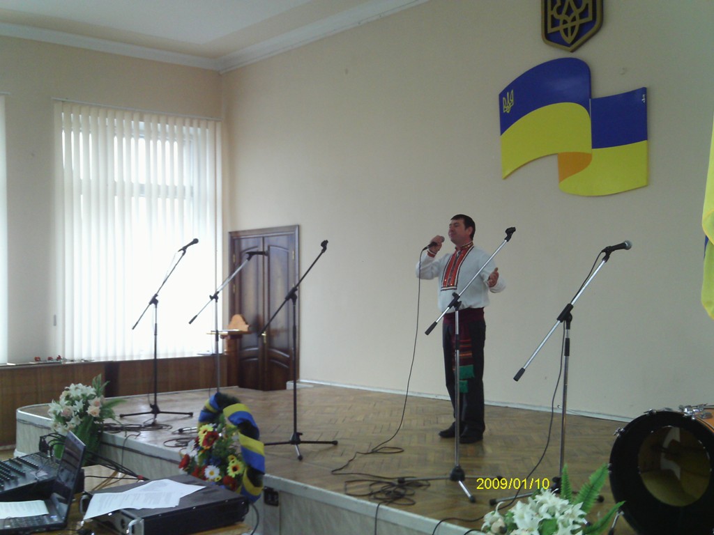 Звучали пісні про Україну у виконанні О.Петренка, соліста районного Будинку культури.