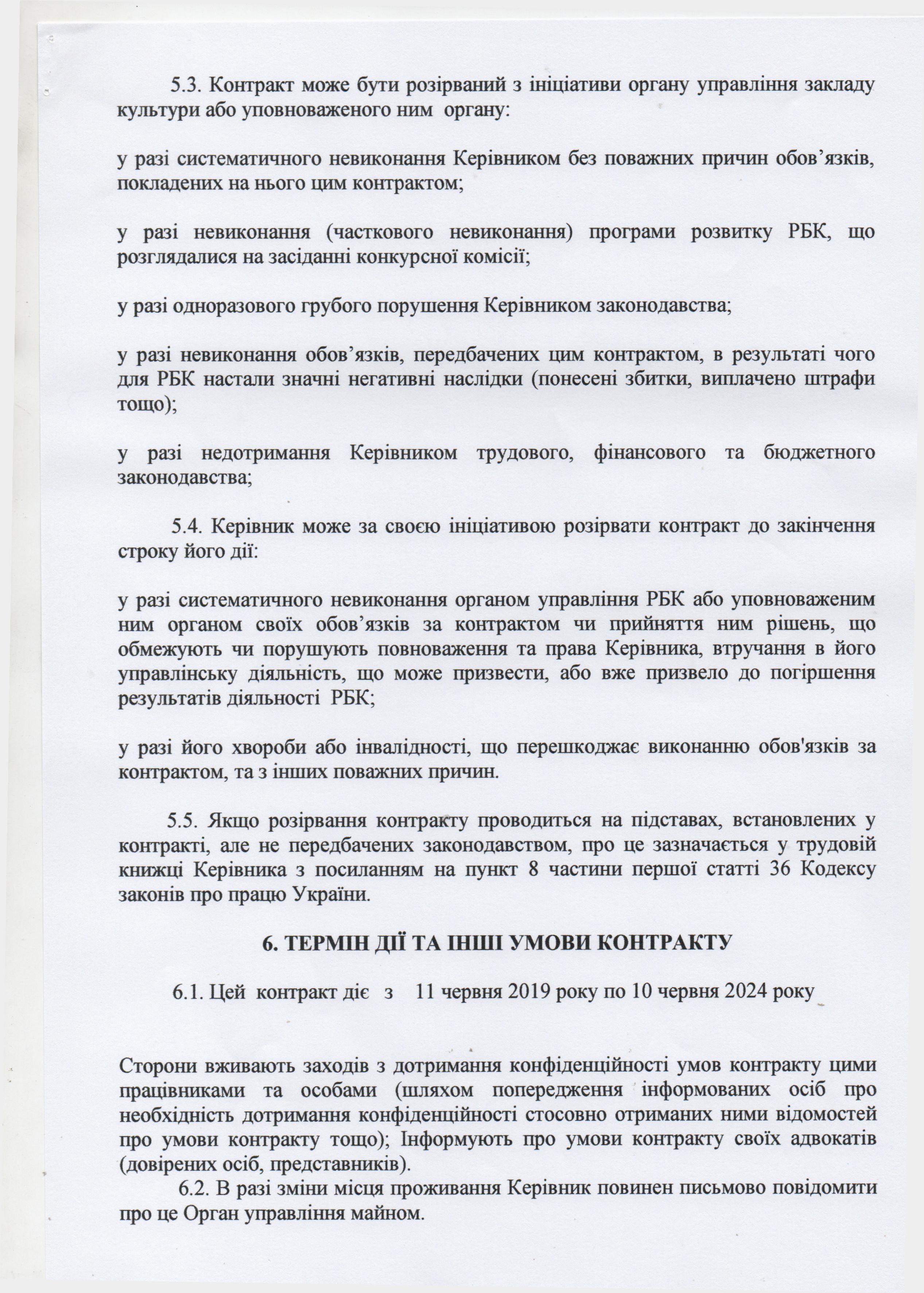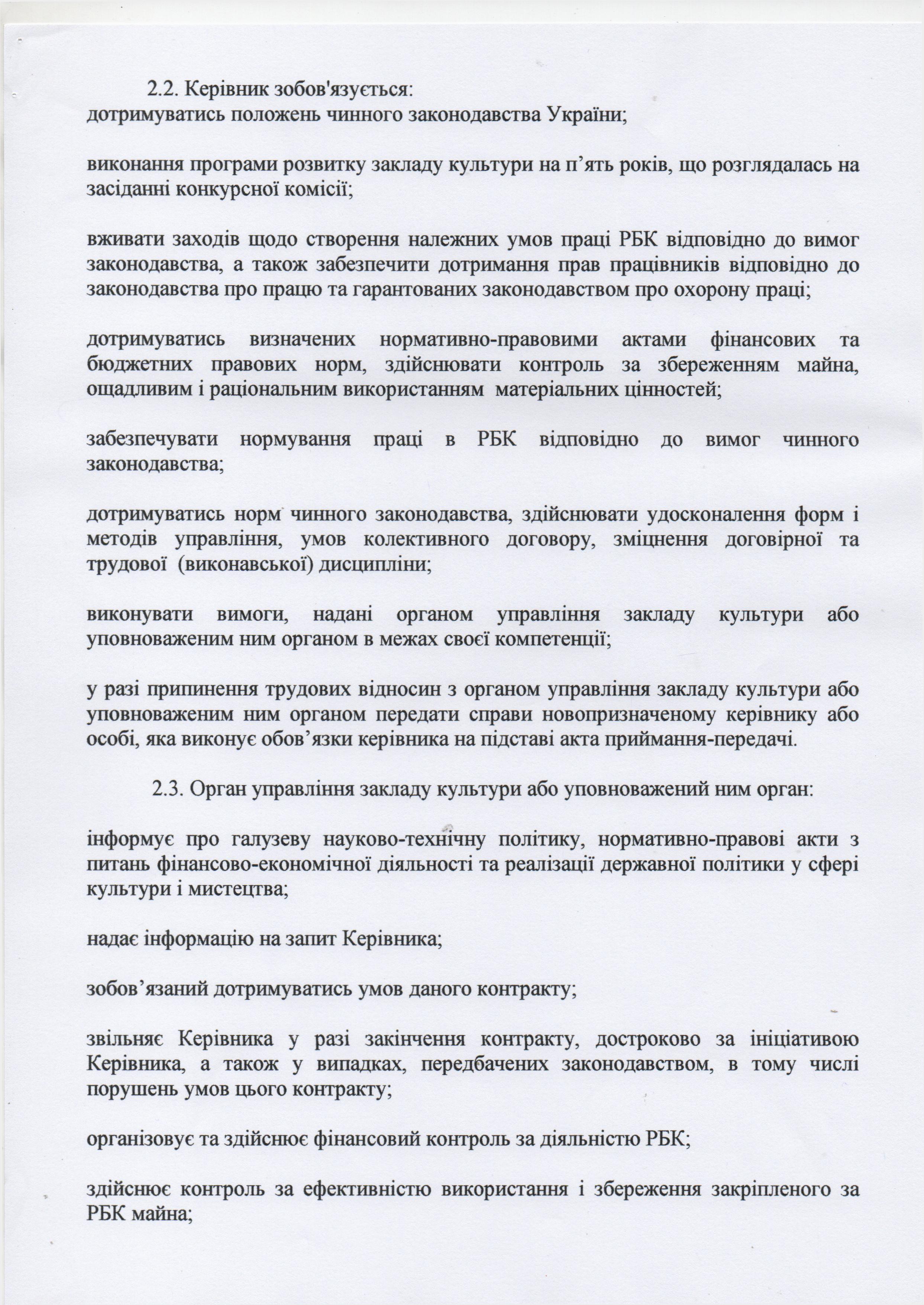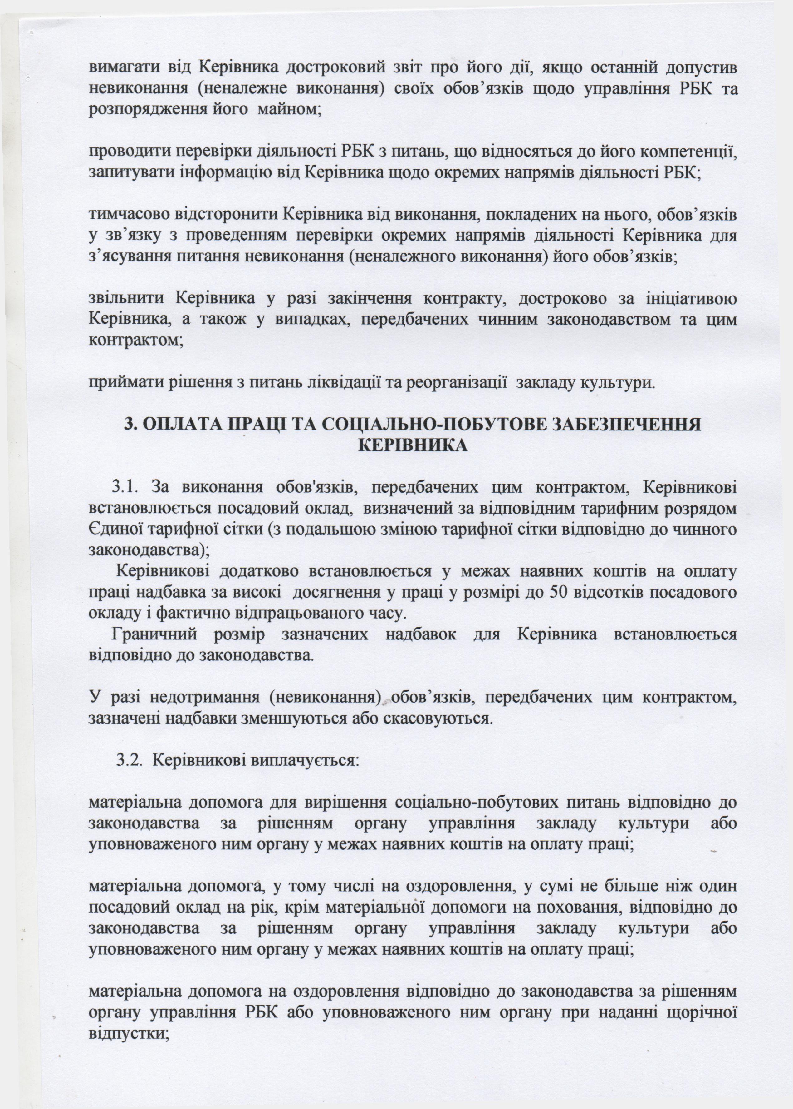 Контракт з директором комунального закладу Арбузинський районний Будинок культури