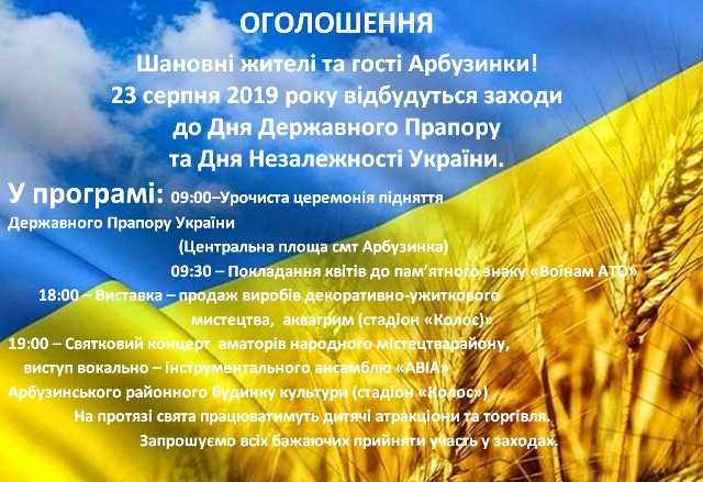 З 24 червня по 10 липня 2019 року приміщенні Арбузинської центральної районної бібліотеки до Дня Конституції України, буде проходити експозиція фотодокументальної виставки «Символ твоєї свободи. 100 років Державного герба України».
