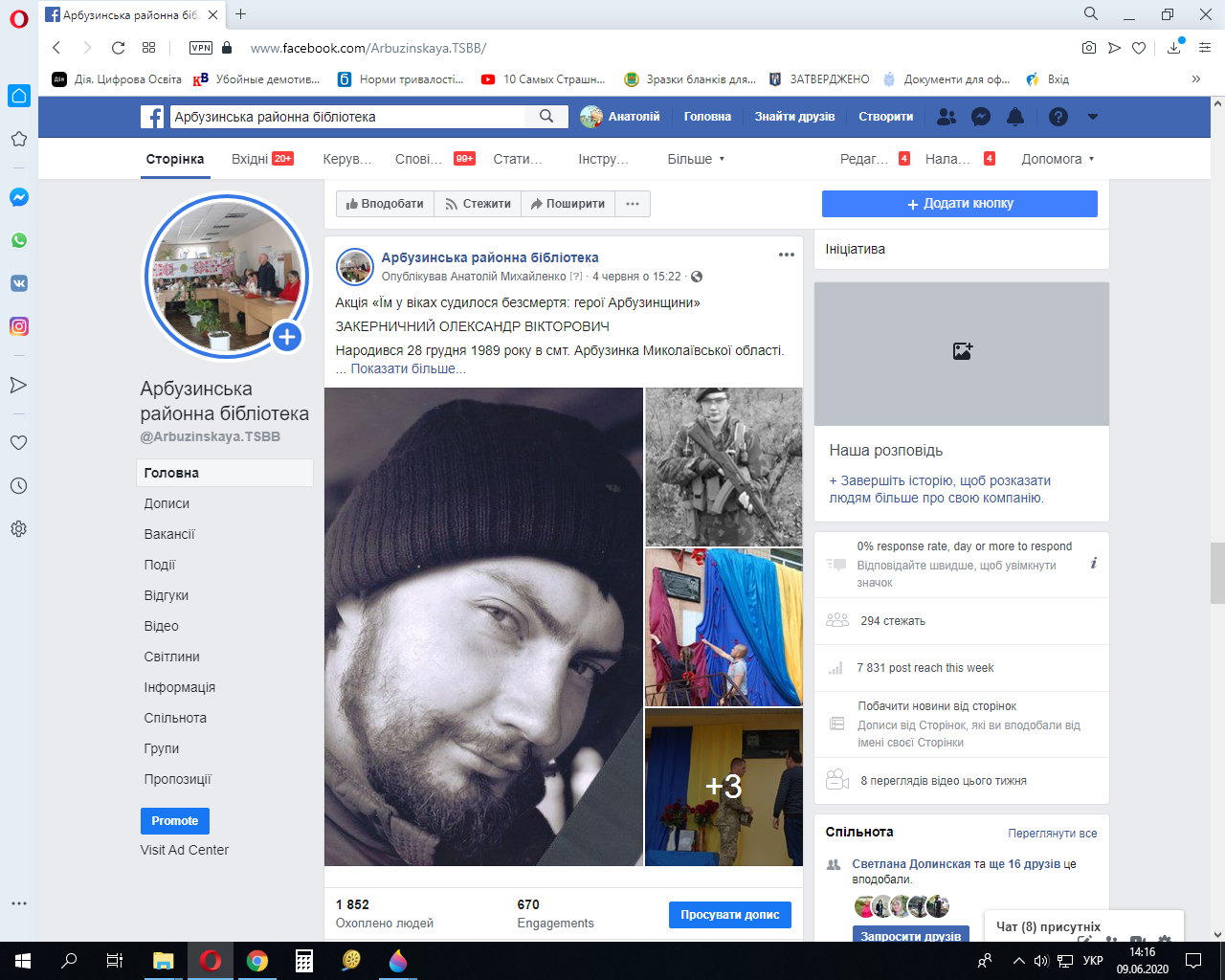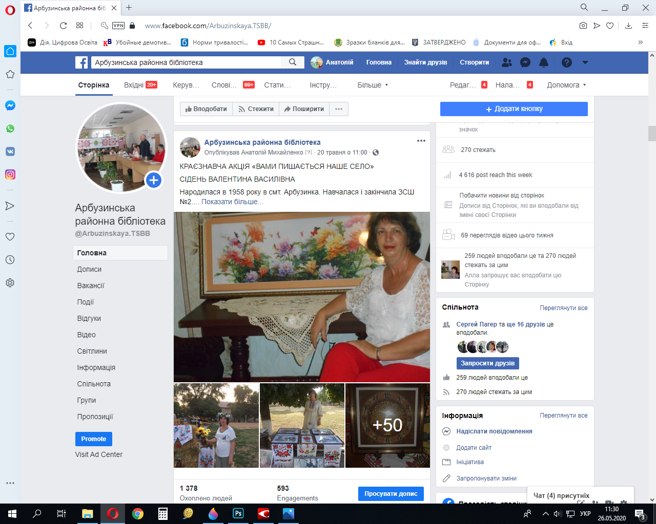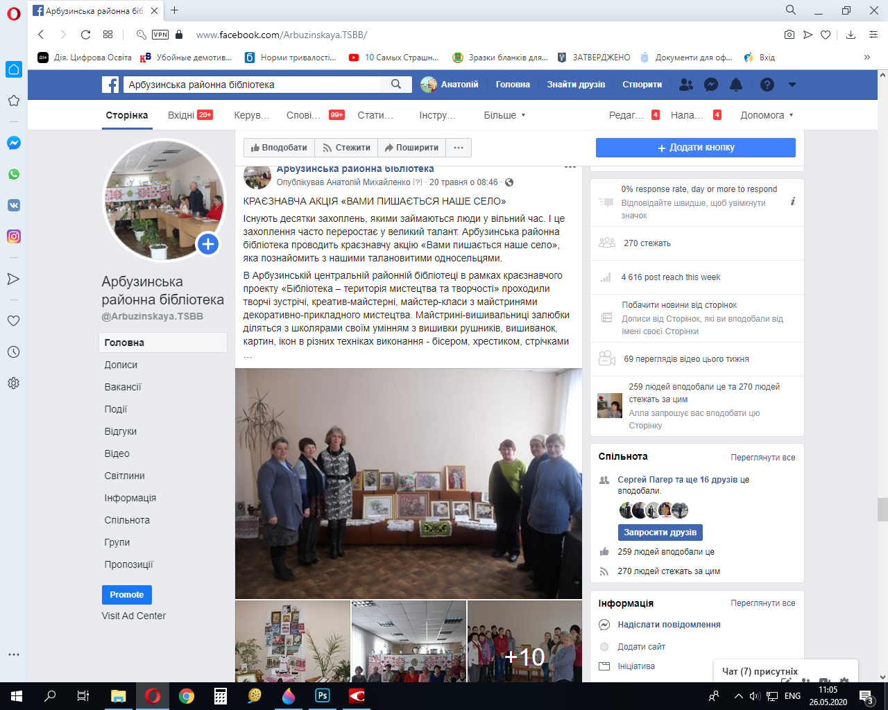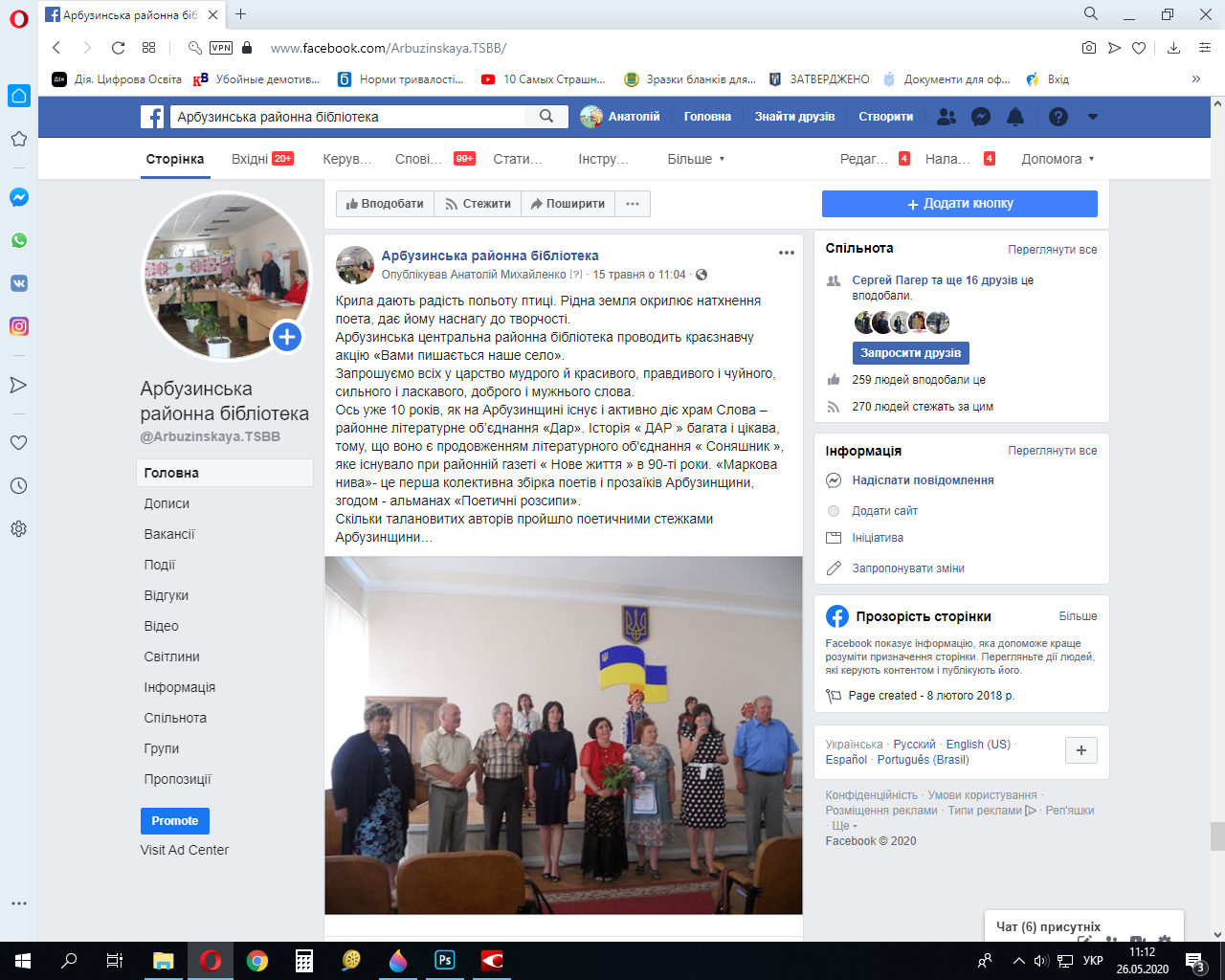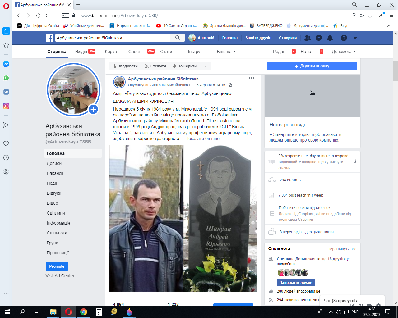 У Facebook на сторінці Арбузинської центральної бібліотеки