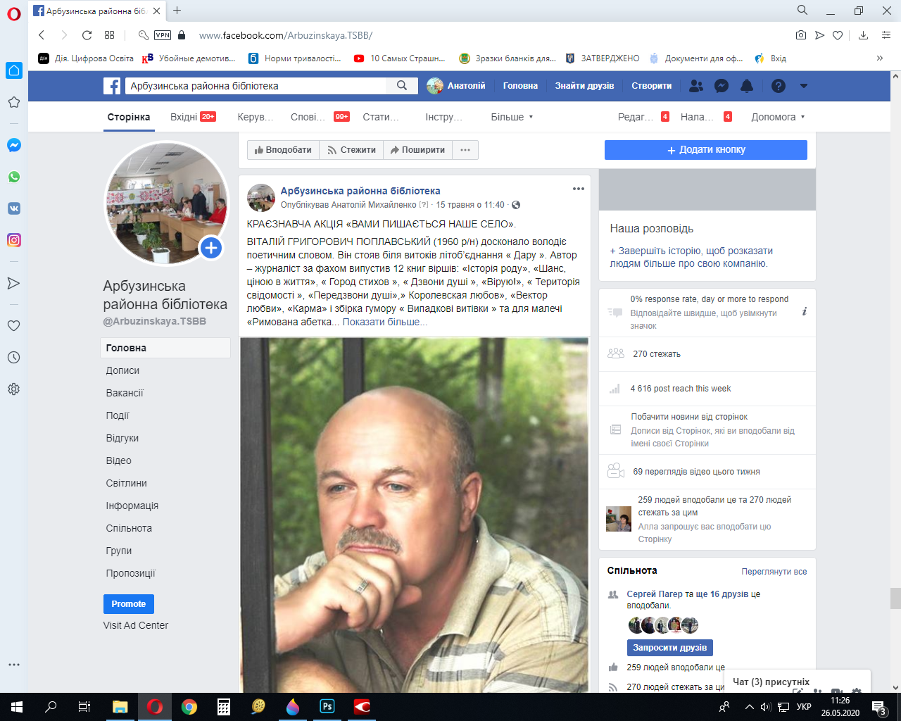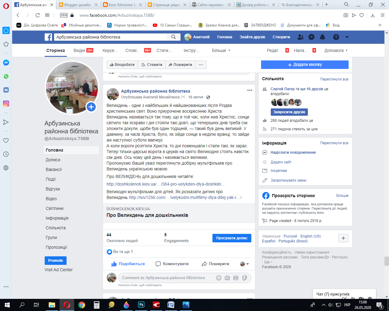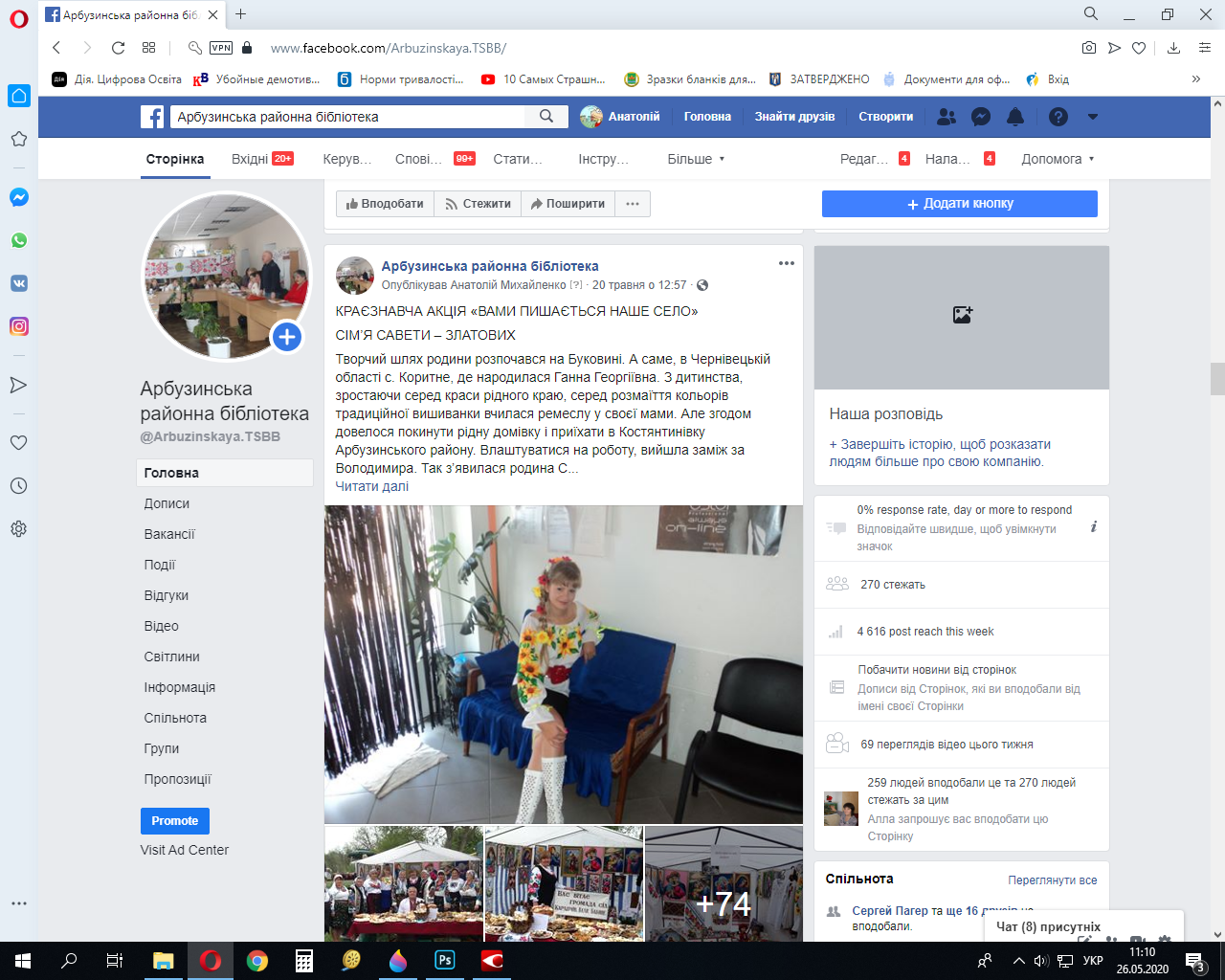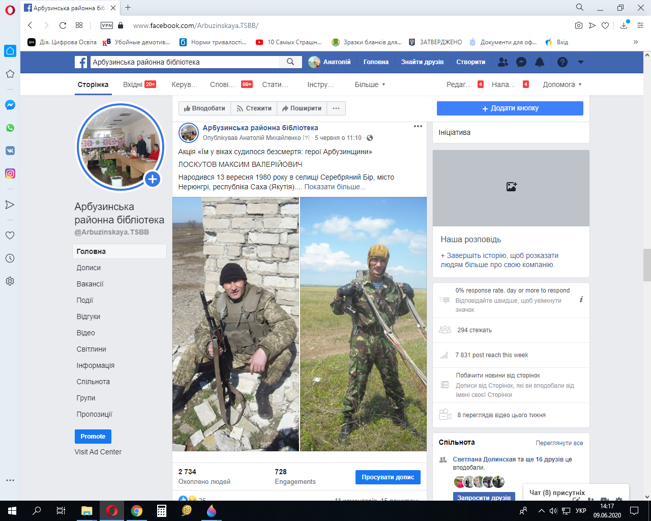 У Facebook на сторінці Арбузинської центральної бібліотеки