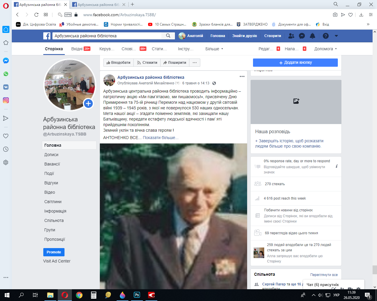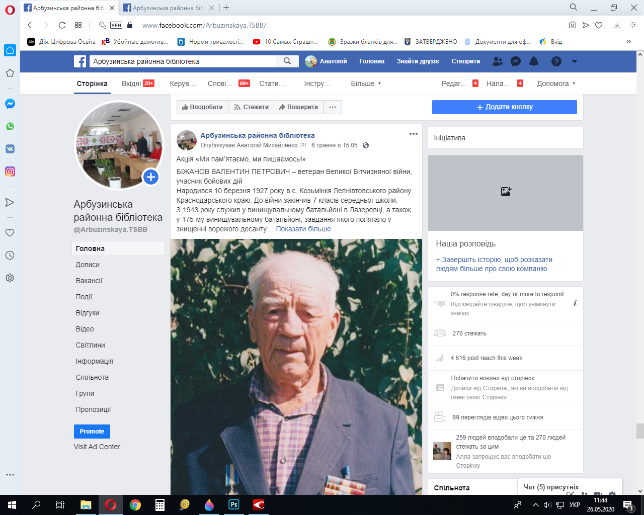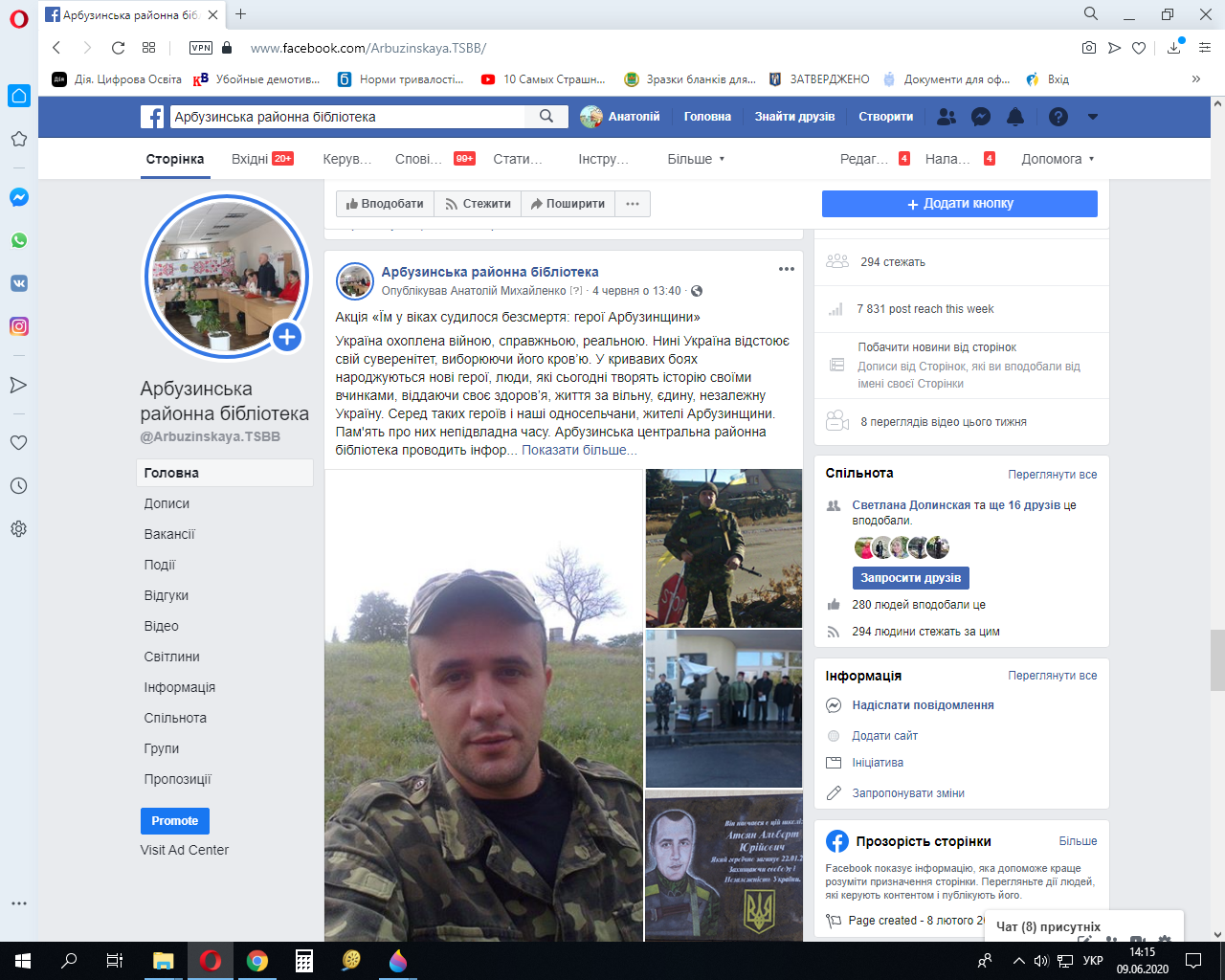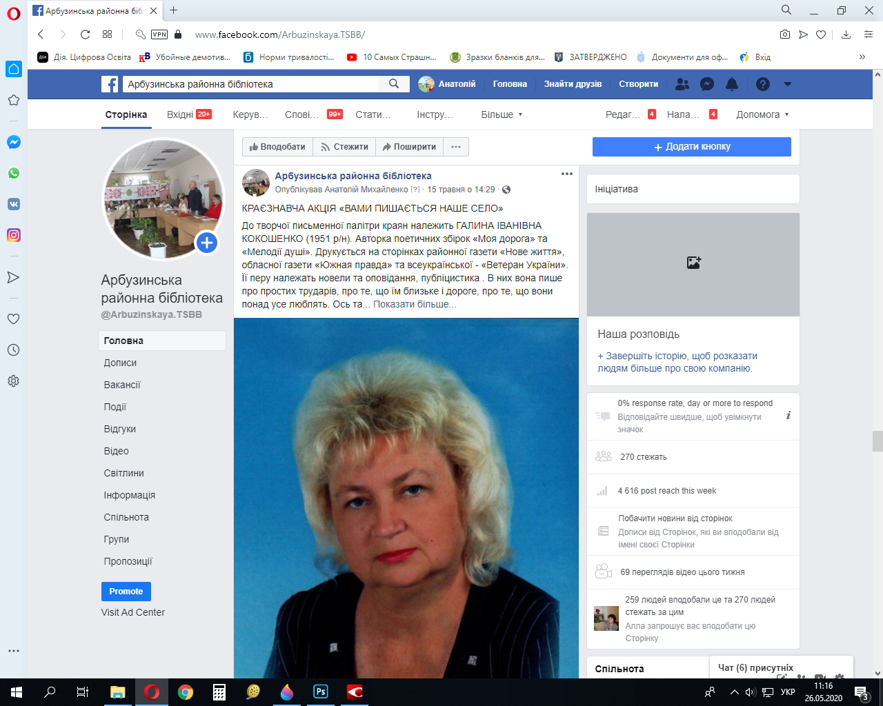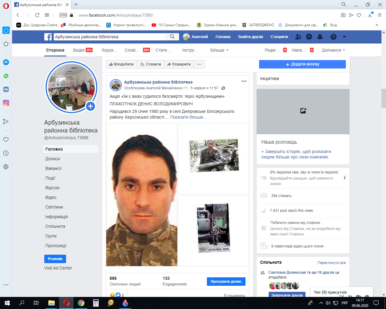 У Facebook на сторінці Арбузинської центральної бібліотеки