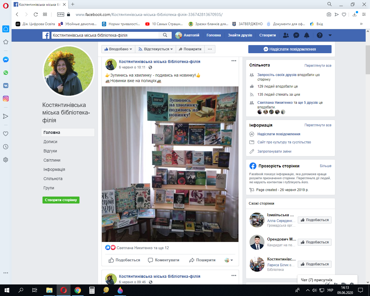 У Facebook на сторінці Костянтинівської міської бібліотеки-філії