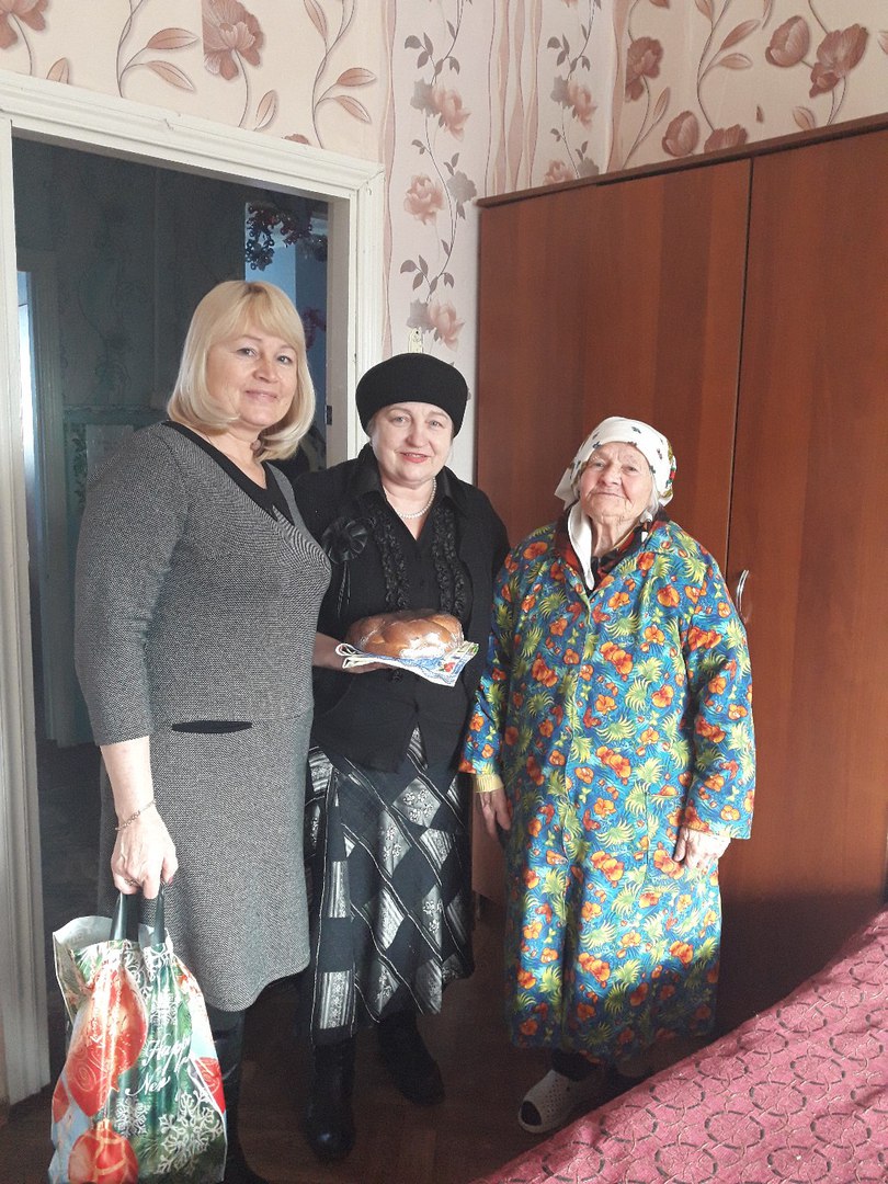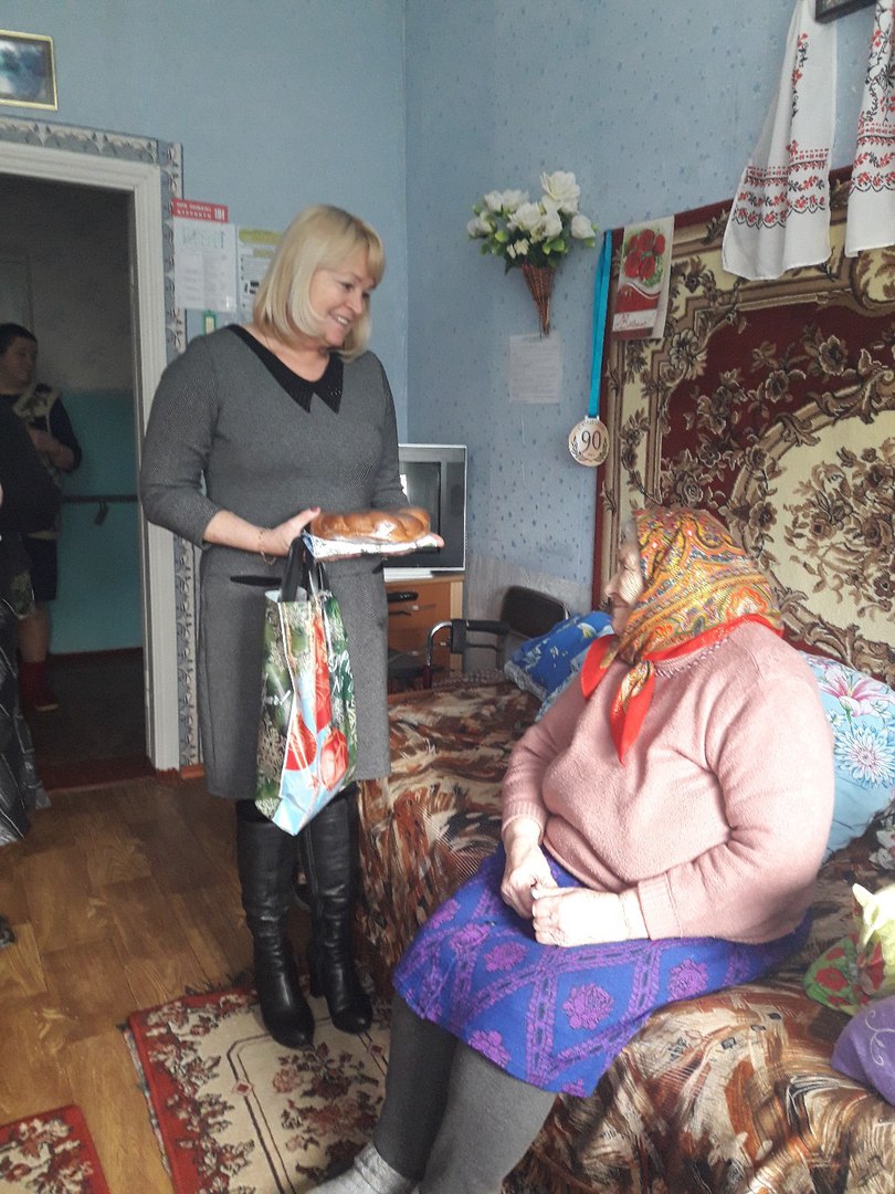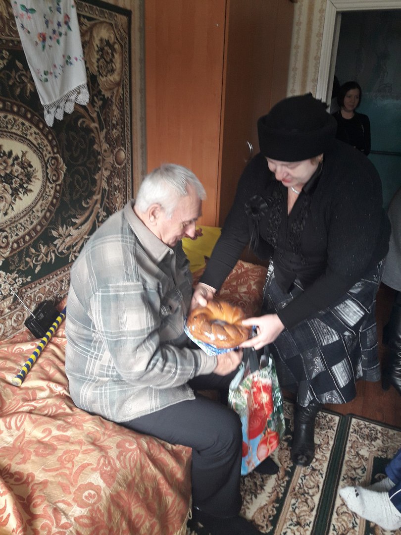05.01.2018р. Начальник управління соціального захисту населення Ніколаєнко О.В директор територіального центру Резніченко А.О завітали в стаціонарне відділення та привітали підопічних з різдвяними святами. Щирі слова привітання зігріли серця мешканців відділення. Після поздоровлення підопічним подарили солодкі подаруночки та калачі.