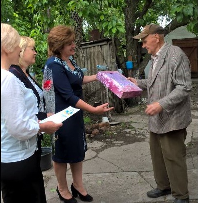 08.05.2018р. з нагоди відзначення Дня Перемоги заступник голови райдержадміністрації, виконувач функцій та повноважень голови райдержадміністрації Василенко А.О. начальник управління соціального захисту населення Ніколаєнко О.В. голова ветеранської організації Черевач Л.А., соціальний працівник Бурля О,О. відвідали учасників бойових дій в с.Агрономія Якушкіна Михайла Устиновича , Бугайчук Івана Федоровича, побажали їм міцного здоров’я, мирного неба, довголіття, та вручили квіти і подарунки.
